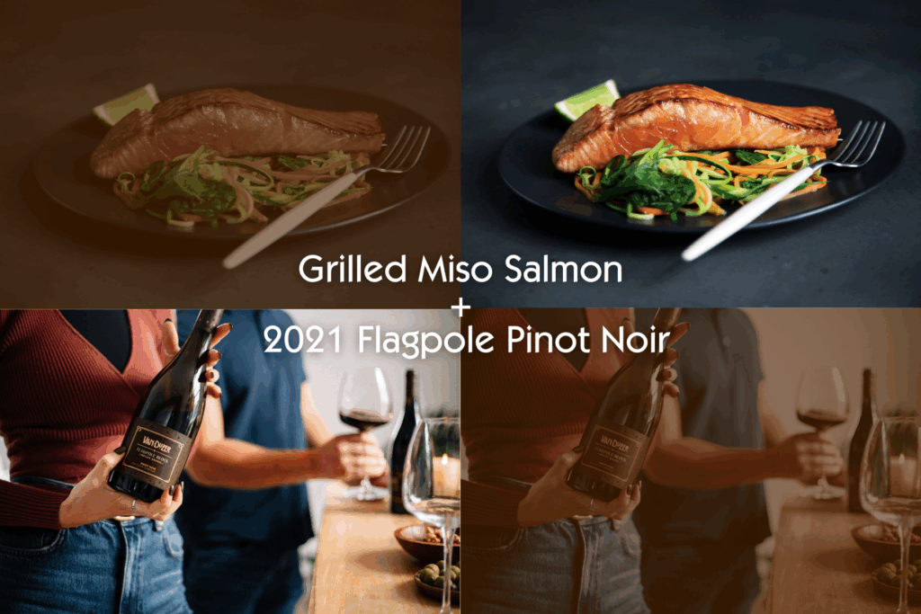 At Van Duzer, we believe that the best meals are the ones that bring people together. This week, we’re celebrating one of the most beloved classic pairings in wine and food – salmon and Pinot Noir. Our savory miso-glazed grilled salmon served alongside our renowned 2021 Flagpole Block Pinot Noir embodies the principle that what grows together, goes together.